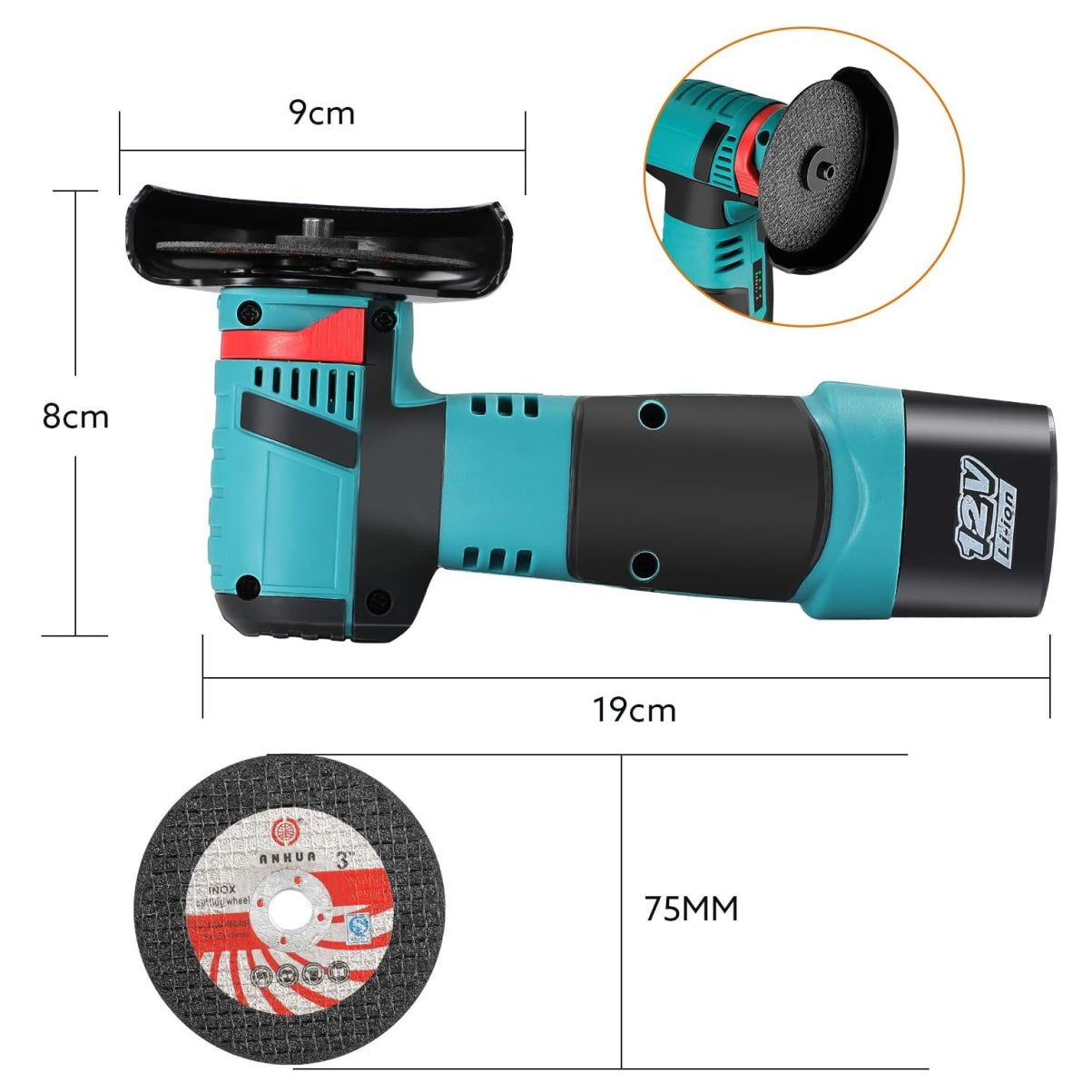 Diámetro del disco de 76 mm para tareas en espacios reducidos.